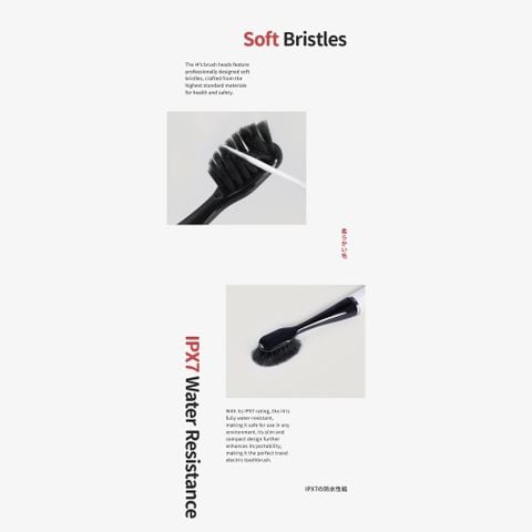 Khả năng chống nước IPX7: với xếp hạng IPX7, i4 có khả năng chống nước hoàn toàn, giúp nó an toàn khi sử dụng trong mọi môi trường. Thiết kế mỏng và nhỏ gọn của nó càng nâng cao tính di động, khiến nó trở thành bàn chải đánh răng điện du lịch hoàn hảo.