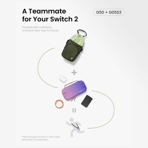 Túi Đeo Chéo Phụ Kiện & GameOn-G50 Switch 2 JoyCarry Sling - Khơi nguồn từ ý tưởng mang theo niềm vui đi khắp thế gian, túi đeo JoyCarry Sling được thiết kế "đo ni đóng giày" cho mẫu Nintendo Switch 2 Slim Case | Gói Trọn Niềm Vui, Sẵn Sàng Chinh Phục