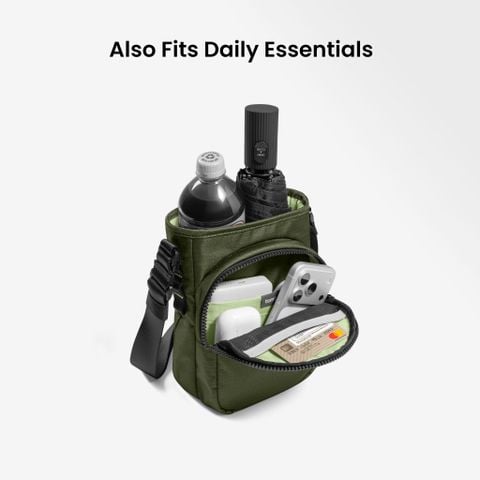 Dây đeo vai có thể điều chỉnh linh hoạt: Dây đeo được thiết kế công thái học (ergonomic) có thể điều chỉnh độ dài, đảm bảo sự vừa vặn cá nhân hóa cho từng người dùng, dù bạn đeo chéo người (crossbody) hay đeo một bên vai.