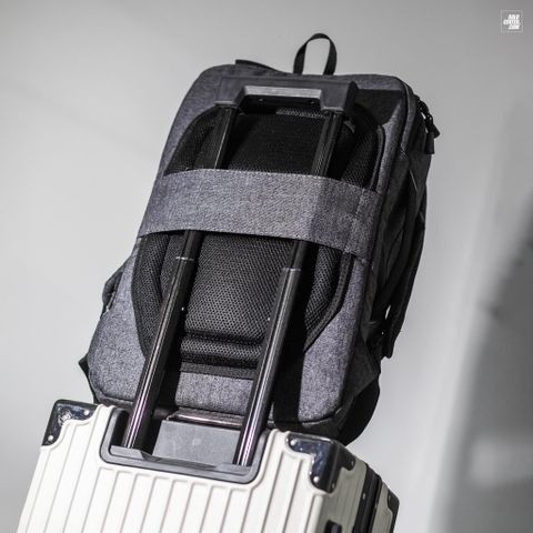 Quai gài cần kéo vali phía sau đệm lưng balo, rất tiện dụng khi bạn phải di chuyển nhiều.