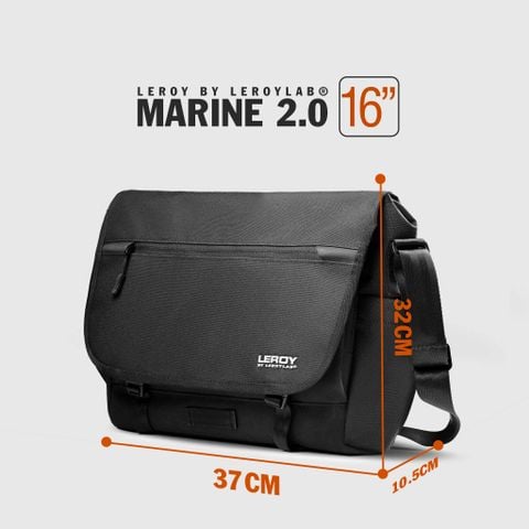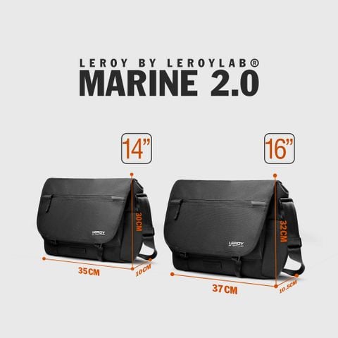 Leroy by Lerolab® 15.6" Marine 2.0 Messenger Bag Black là mẫu túi đeo chéo laptop 15.6" mới nhất từ hãng, được sản xuất từ 100% chất liệu Codura 900D hai mặt: mặt vải phía ngoài và mặt trong phủ PTE chống thấm nước. Túi có rất nhiều ngăn phụ, cùng ngăn chính lớn có ngăn chống sốc cho laptop đến 14" cho mỗi ngày đi làm, đi học hay đi chơi của bạn vô cùng thoải mái.