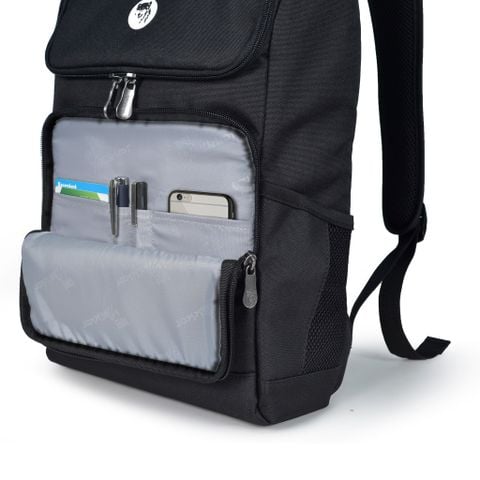 Thiết kế với 1 ngăn chính lớn, 1 ngăn laptop cho các dòng laptop lên đến 15.6", 1 ngăn Ipad hoặc giấy tờ kích thước A4, 1 ngăn khoá kéo hộp trước cùng với nhiều ngăn nhỏ đựng phụ kiện bên trong, 2 bên hông túi được thiết kế với 2 ngăn lưới đựng bình nước hoặc phụ kiện hàng ngày.