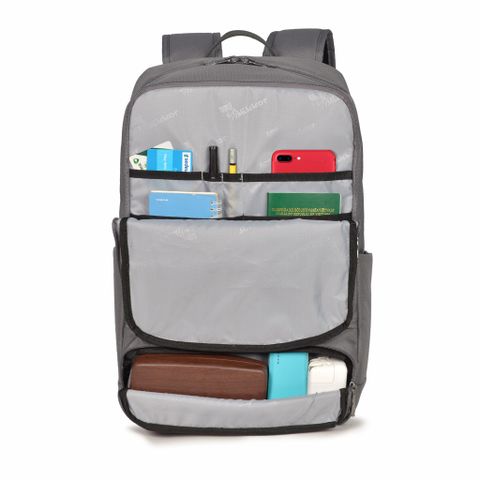 Thiết kế với 3 ngăn chính lớn, trong đó ngăn chính sau được tích hợp 1 ngăn đựng laptop riêng cho các dòng mày laptop PC lên đến 15.6" và Mac 17", có đai cài an toàn cho từng dòng máy khác nhau. Ngăn chính mặt trước còn lại được thiết kế dây kéo an toàn, bên trong có nhiều ngăn nhỏ đựng phụ kiện như bóp ví, chìa khoá, điện thoại, viết, sổ tay...vv.