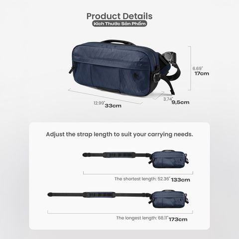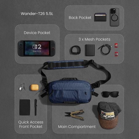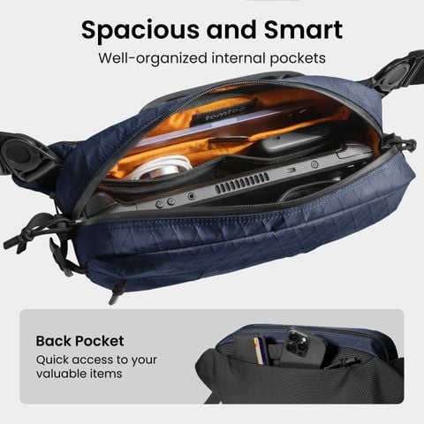 Tomtoc Wander-T26 X-Pac Daily Sling Blue T26S1B1 - Chiếc túi đeo chéo mới nhất được cung cấp sự bảo vệ tối đa cho những vật dụng cần thiết hàng ngày của bạn, được nâng cấp bằng vải X-Pac. Lấy cảm hứng từ công nghệ vải buồm tiên tiến, các lớp phủ hiệu suất X-Pac mang lại cho bề mặt sự nhẹ nhàng, bền bỉ và 100% chống nước.
