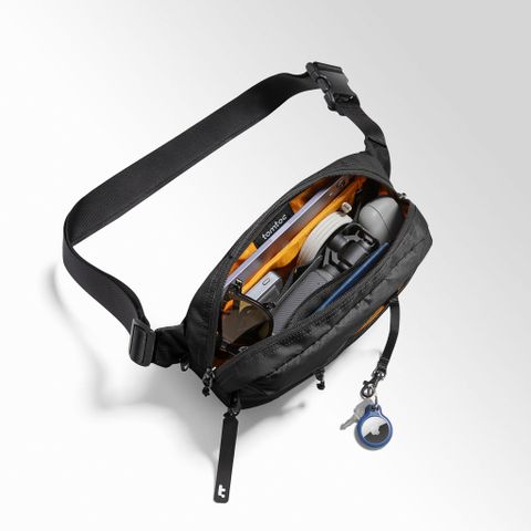 Tomtoc Aviator 3.5L Chest Bag Black T33M1D1 có ba ngăn. Truy cập nhanh ngăn trước túi cho AirPods Pro, thẻ tín dụng; nhiều ngăn bên trong ở giữa cho các thiết bị công nghệ, chẳng hạn như Kindle, bảng điều khiển Nintendo Switch, Power Bank, cáp, v.v...; ngăn sau ẩn cho điện thoại di động hoặc hộ chiếu của bạn.