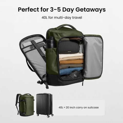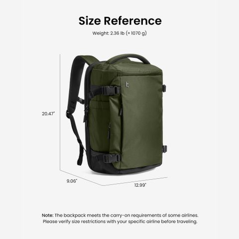 Balo du lịch có ngăn chứa laptop Tomtoc Liteway Travel Backpack 17" 40L Green T66M1T1 là lựa chọn lý tưởng cho những chuyến đi cuối tuần hoặc nghỉ dưỡng 3-5 ngày. Kích thước balo được IATA chấp thuận, dễ dàng để vừa trong ngăn đựng hành lý xách tay trên máy bay, giúp bạn tiết kiệm thời gian và không cần phải ký gửi hành lý.