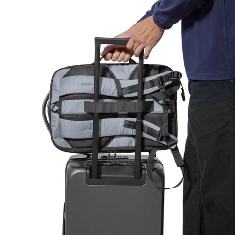 Thiết kế dây đai dọc phía sau để giúp tiện lợi hơn cho việc kết hợp cùng với vali kéo