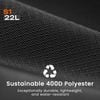 Thoải mái khi mang: Tấm đệm lưng và dây đeo vai được đệm bằng EVA có độ đàn hồi cao và bọc lưới thoáng khí, mang lại sự thoải mái suốt cả ngày. Dây đeo xương ức giúp phân bổ trọng lượng đồng đều, giảm mệt mỏi.