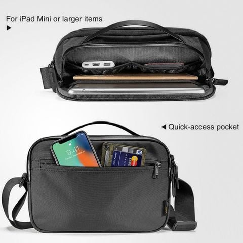 Tomtoc Crossbody For Tech Accessories And Ipad 10.5''/Pro 11'' Black (H02-A01D) là chiếc túi chéo thời trang và đặc biệt phù hợp với những người có cuộc sống bận rộn. Chiếc túi được thiết kế cho iPad 10.5/iPad Pro 11inch /Tablet/Notebook 11inch và những vật dụng cá nhân khi ra ngoài hoặc đến bất kỳ nơi nào.