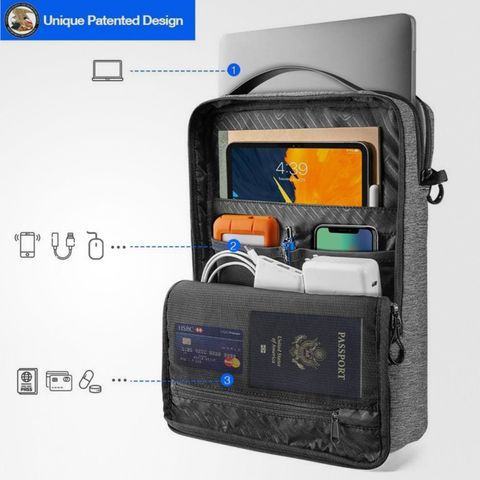 Tomtoc Urban Shoulder Bag For Ultrabook 13'' Gray (H14-C01G) sử dụng công nghệ sáng chế tiên tiến của Hoa Kỳ CornerArmor™ trang bị phía dưới túi chống sốc một lớp đệm bảo vệ 360 xung quanh vành túi một cách an toàn như một túi khí xe hơi. Đây có lẽ là điều mà khách hàng tìm đến Urban Shoulder Bag For Ultrabook 13'' Gray (H14-C01G) nhiều nhất bởi kết cấu chống sốc hoàn hảo giúp máy tính hoàn toàn có thể được bảo vệ khi xảy ra vấn đề va chạm.