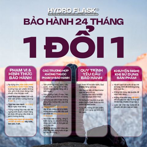 Bảo hành 24 Tháng (1 Đổi 1) - Quý khách vui lòng tham khảo kỹ chính sách bảo hành Hydro Flask tại đây.